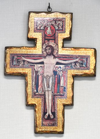 フランシスコがサン・ダミアーノ教会で聞いた「わたしの教会を建て直しなさい」という呼びかけは、単に聖堂を建て直すのではなく、傾きかけた教会の組織全体を立て直しなさいということと言われています。聖フランシスコの精神を受け継ぐ人々によって、このサン・ダミアーノの十字架を模した十字架が、今、多くの教会や修道院に掲げられています。